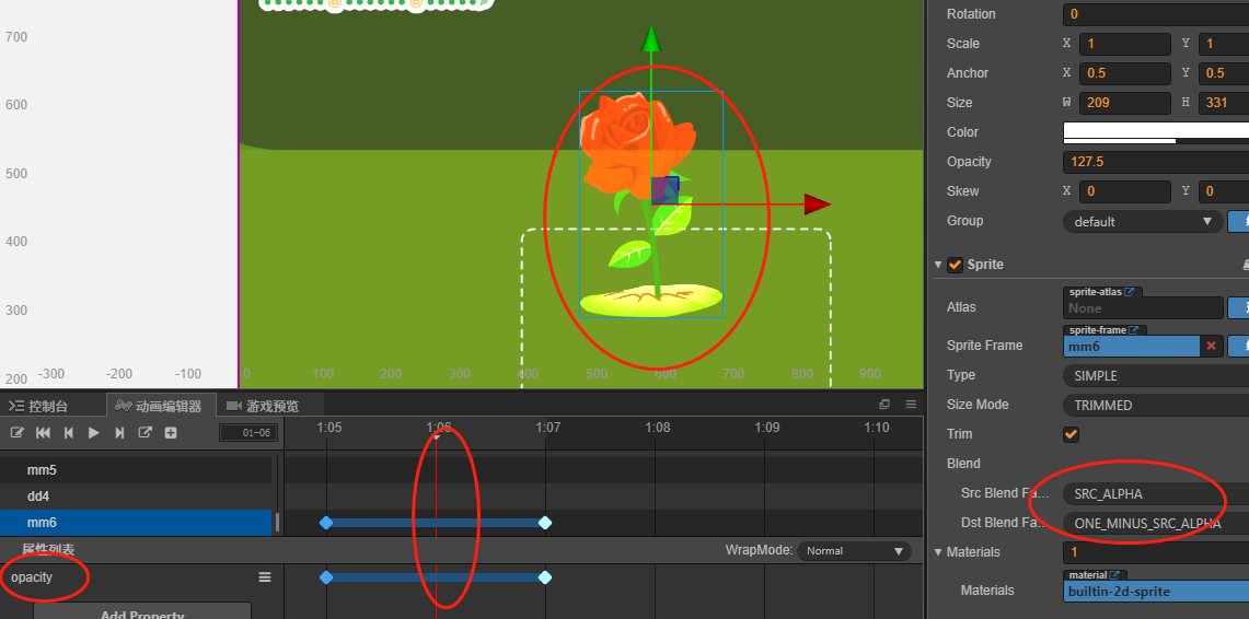 .to(0.5,{opacity:255},但因为有其他元件,需要一起做动画配合,所以只能用动画编辑器做相关动画