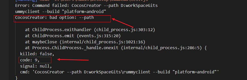 D:\work\CocosDashboard\resources.editors\Creator\2.4.4\CocosCreator.exe: bad option: --path