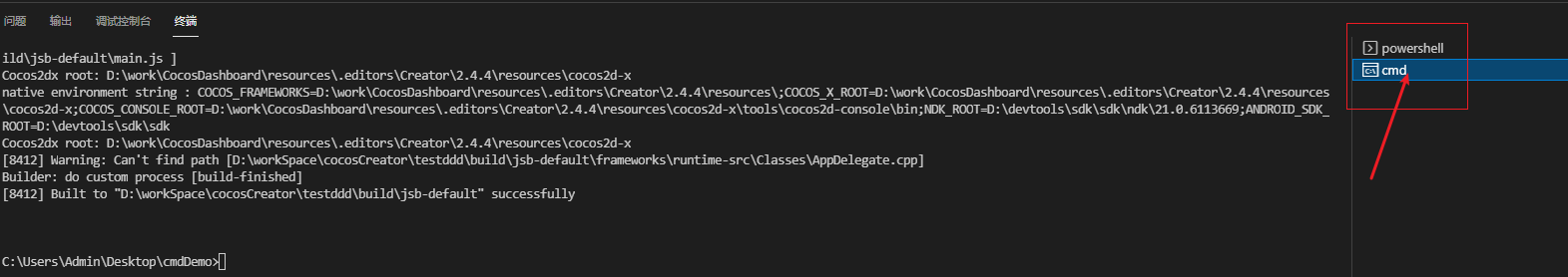 人都麻了,vsCode坑我,这个默认是powershell,所以一直不能执行成功,换成cmd就可以了