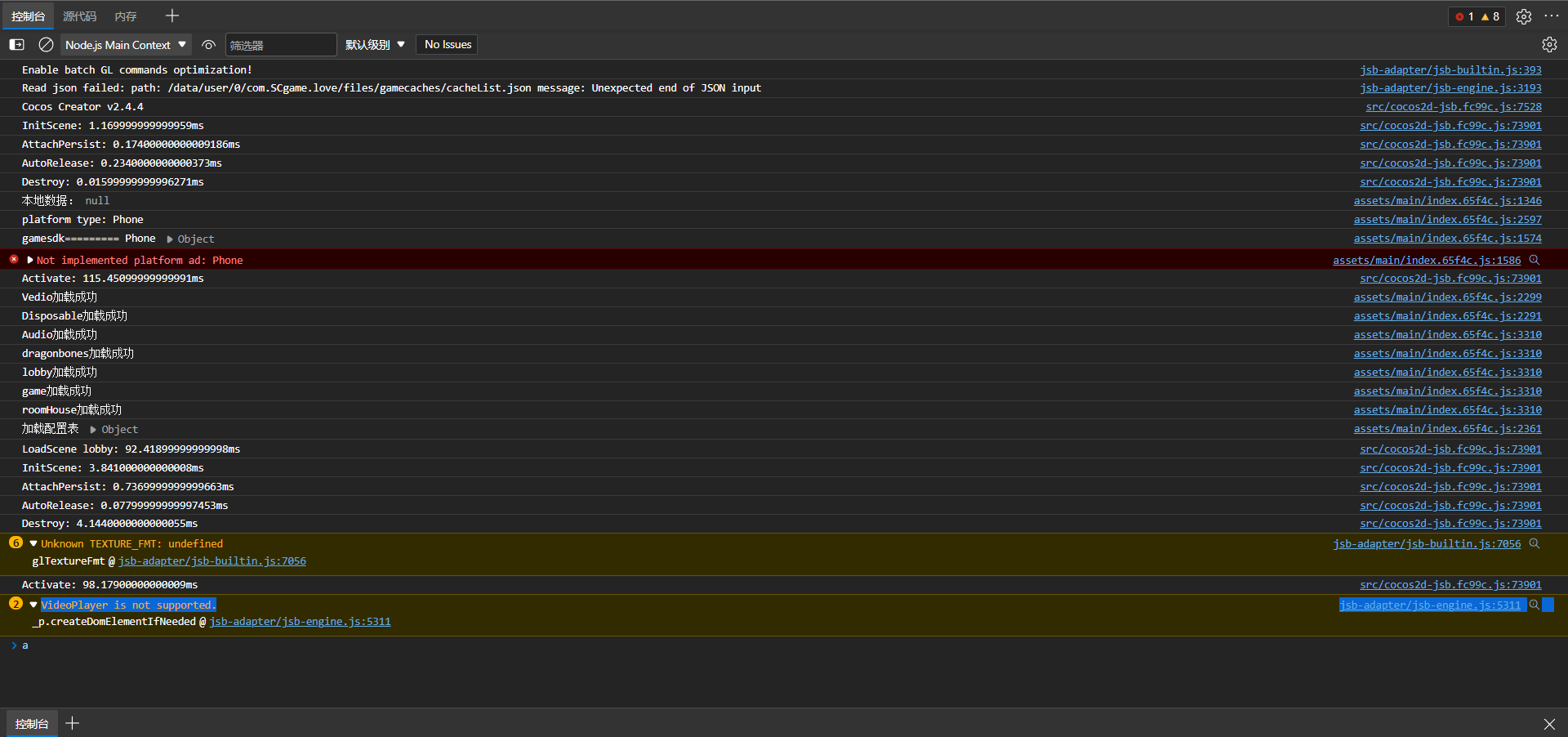 首个报错: jsb-adapter/jsb-engine.js:5311