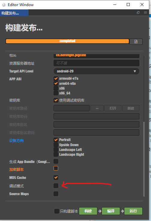 重现方式:特定项目,打包Android,调试模式没有勾选的情况下,由loading场景切换到主场景报错,加载场景失败。如果打包界面勾选调试模式,就能正常运行。