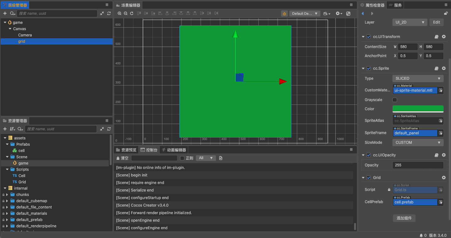 同时写了Grid 的脚本用来制作4*4的方格