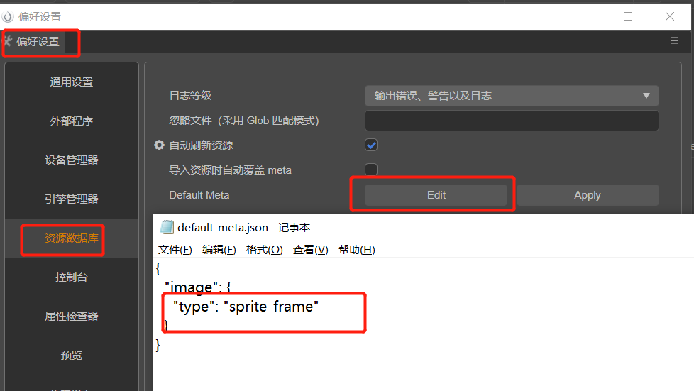 或者修改配置:偏好设置 -> 资源数据库 -> edit