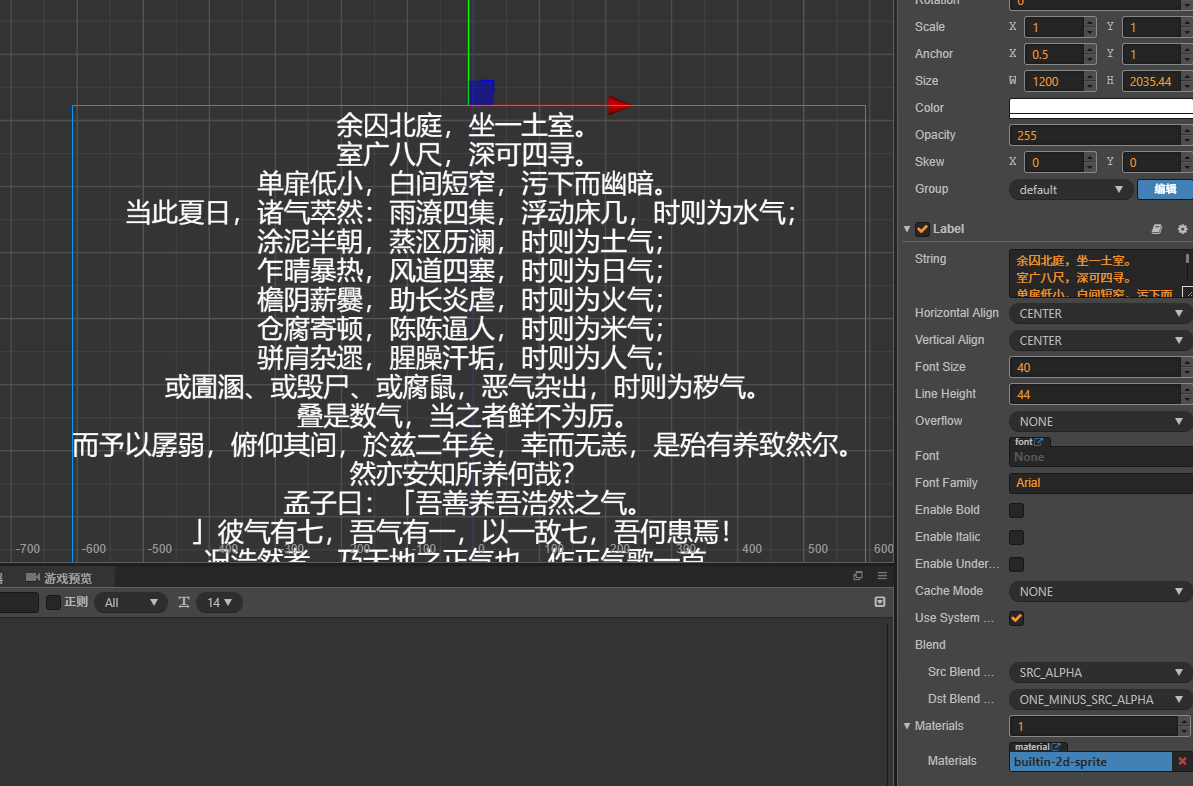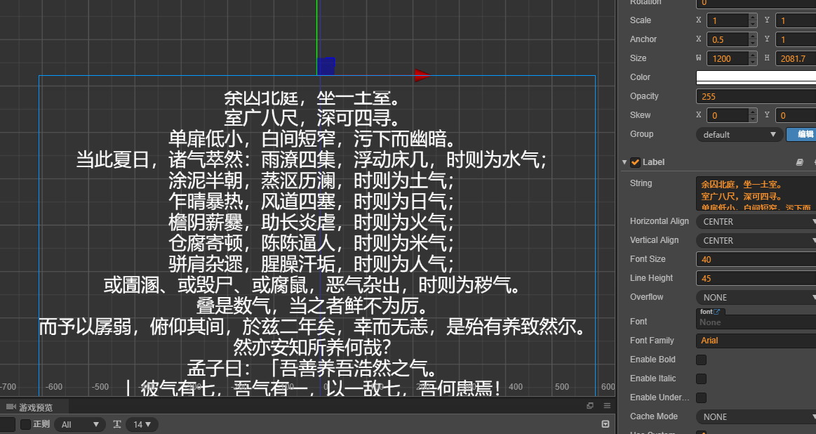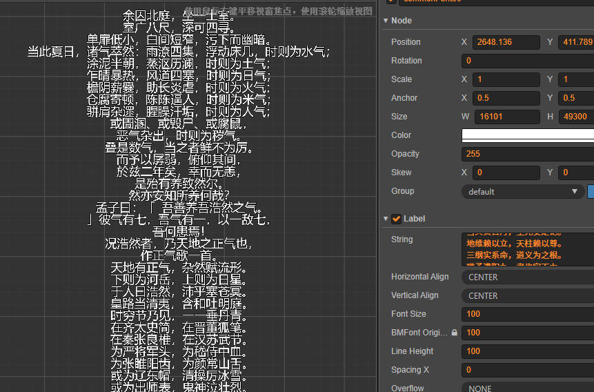 重现方式:多行文字的Label,可使用下面的《正气歌》来复现,可在编辑器中复现。