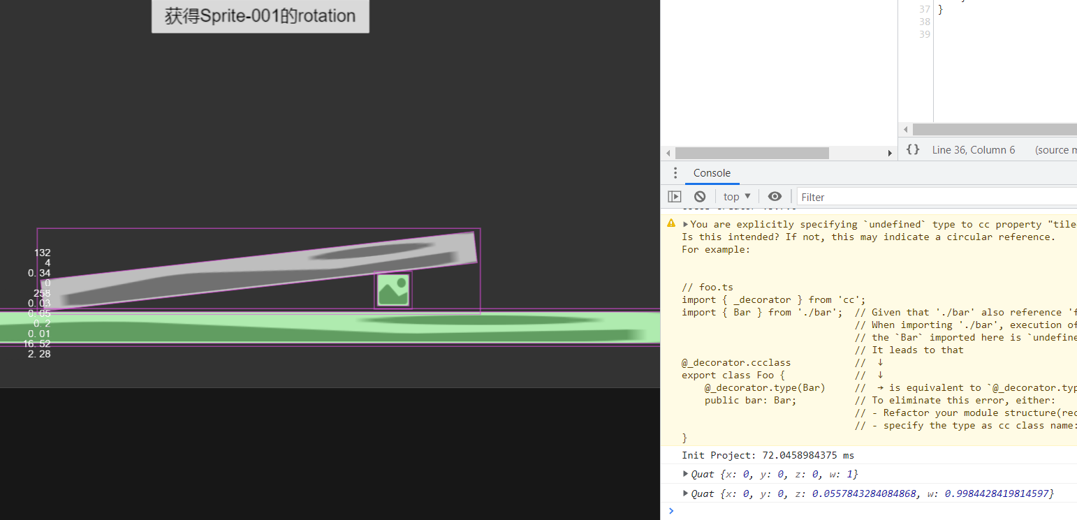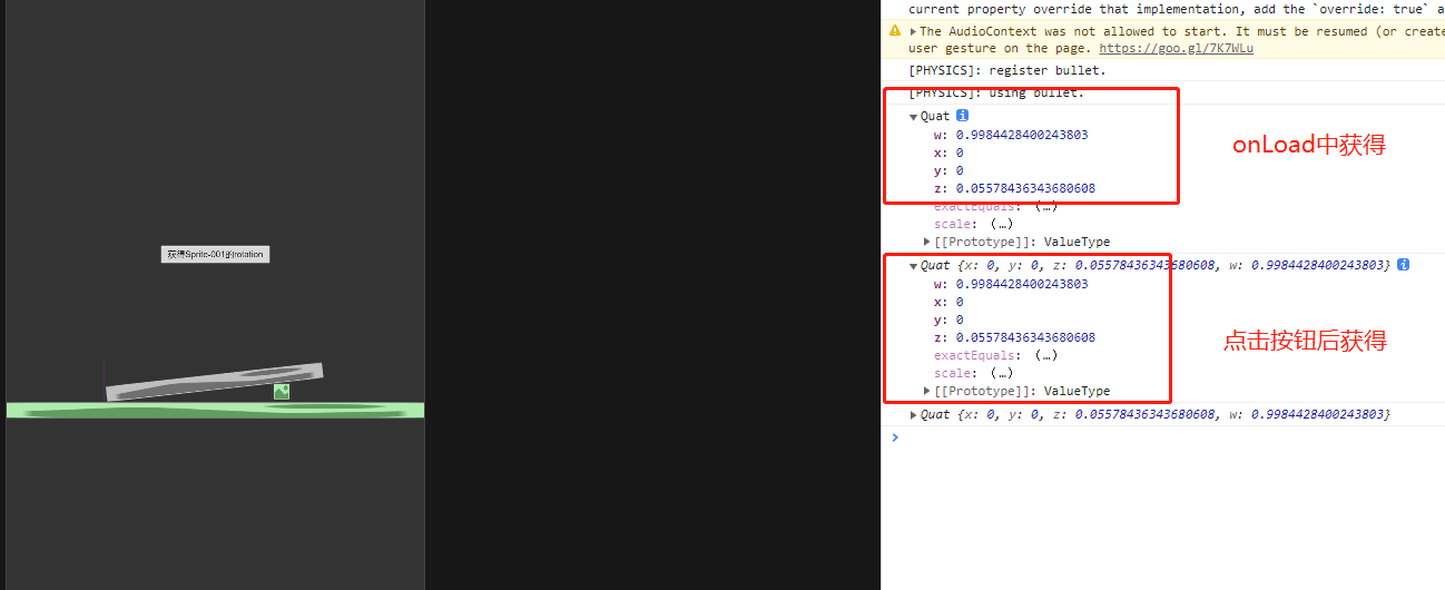 重现方式:给图片加上2d刚体和碰撞体,刚体受物理系统影响改变旋转时,通过node.rotation获得旋转角度,结果角度和物体初始角度一样与当前刚体角度不符.