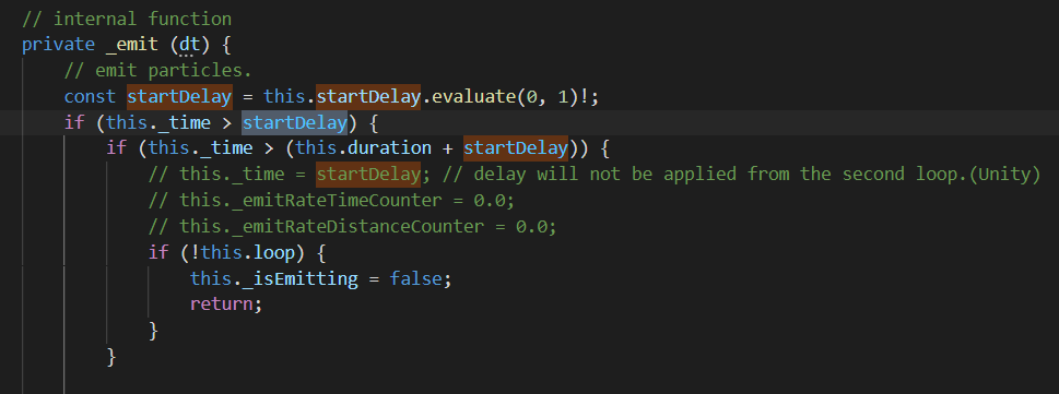 Creator3.4版本的3D粒子系统StartDeley对于RateOverDistance不生效么,我设置了多个粒子发射器,为他们设置了不同的StartDeley,RateOverTime为1时这些粒子发射器的确是按顺序间隔发射粒子,但把RateOverTime清0,RateOverDistance设置为1时,移动所有粒子发射器,粒子都是同时发射的