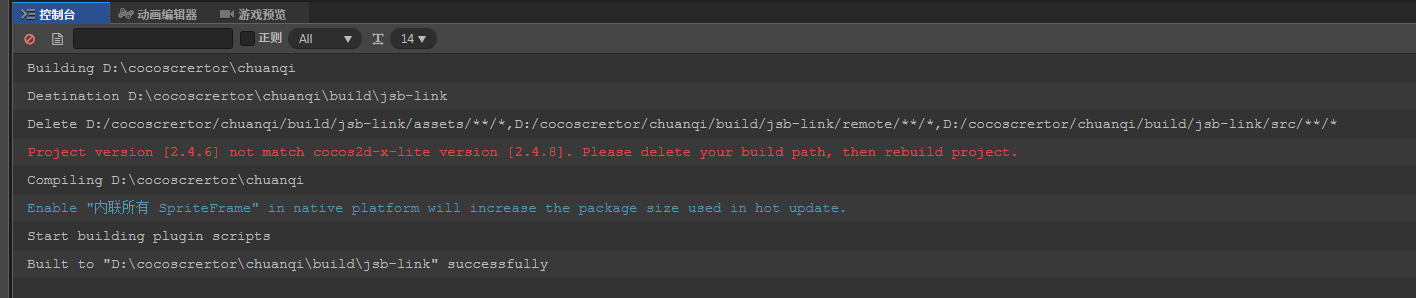 Project version [2.4.6] not match cocos2d-x-lite version [2.4.8]. Please delete your build path, then rebuild project.