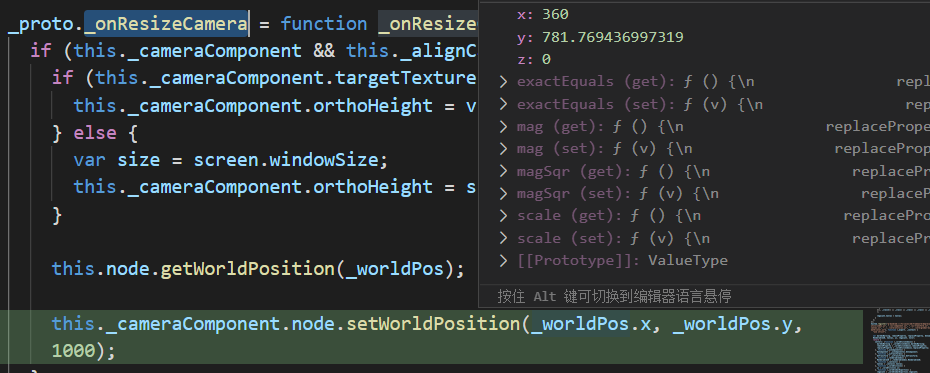 在UiRoot下加载界面调用updateAlignment后,Camera会自动调用_onResizeCamera然后被设置世界坐标到