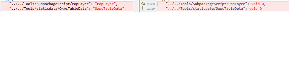 代码总大小17m的大项目,用creator2.4.2编译微信小游戏会有概率出错。编译发布是提示成功的,但是运行的时候会报一些类重复定义的报错,再重复编译一两次有时就会好。经过对比,运行错误的编译主要是代码包的game.js里面有部分类包含会变成void 0。以下是运行报错和运行正常,运行错误两个game.js的对比截图,求助各位大佬