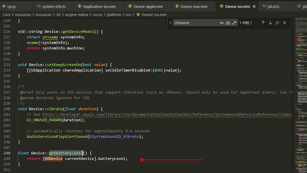 3.4.0 iOS 获取电量jsb.device.getBatteryLevel接口无效