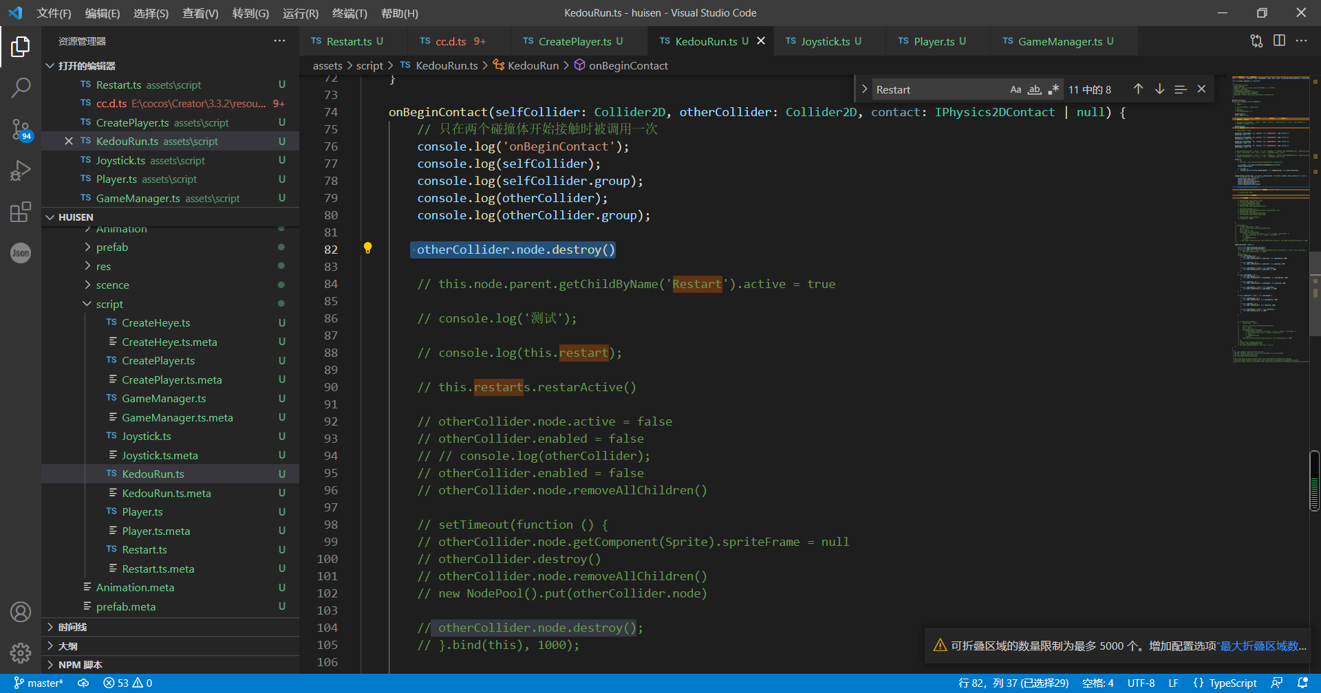 而且当我 用destroy()销毁碰撞的预加载资源就会发生报错
