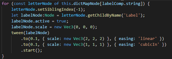 如图,在此代码中我循环遍历每个节点,然后给每个节点设置了放大的tween动画,可是最终的效果是这几个节点同时播放了放大的动画,我现在的需求是想要这几个节点依次播放放大的动画,达到一个循序渐进的效果,请问怎么实现呢?