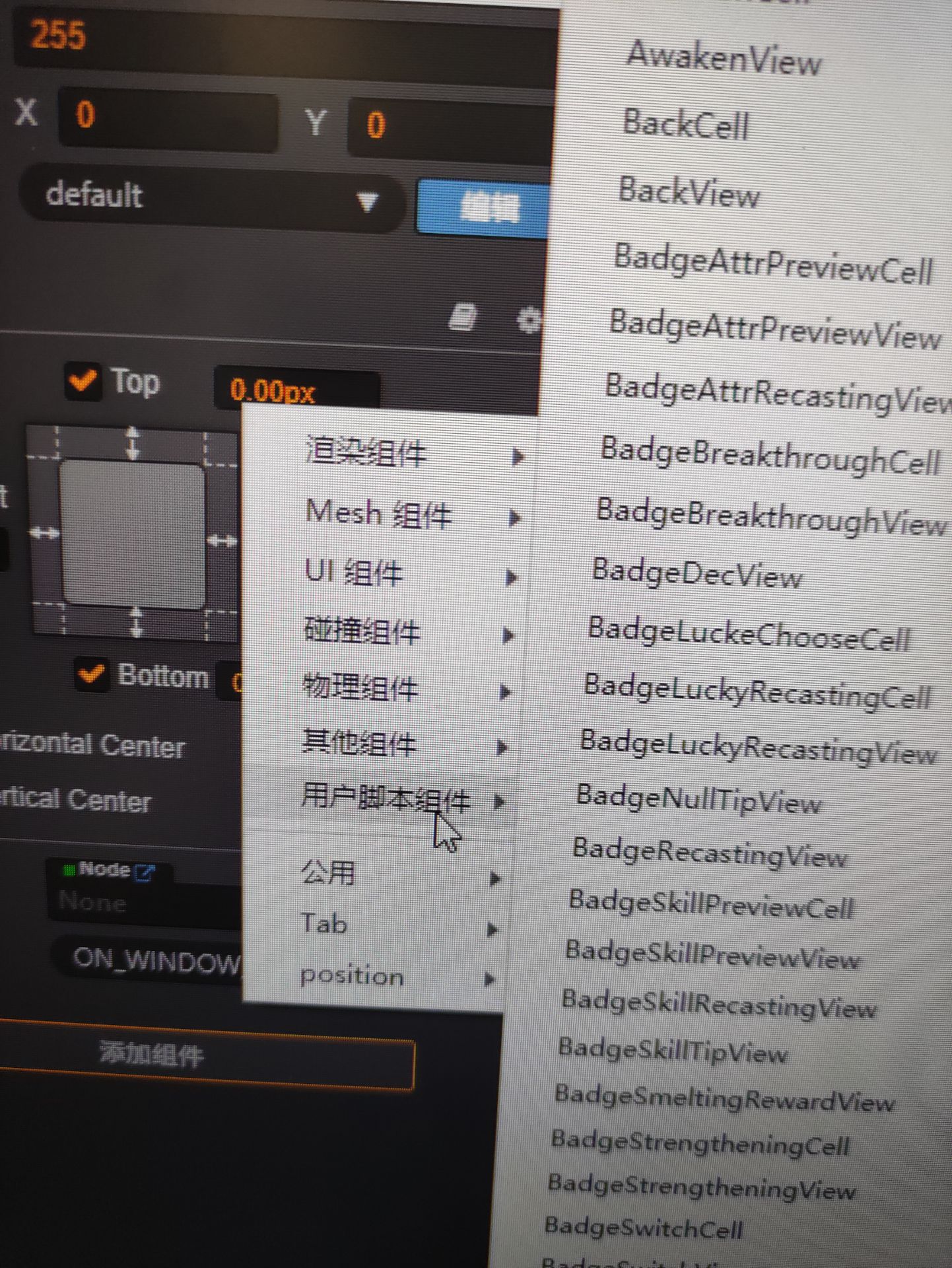 而不是如上图这样在脚本中自定义组件显示
