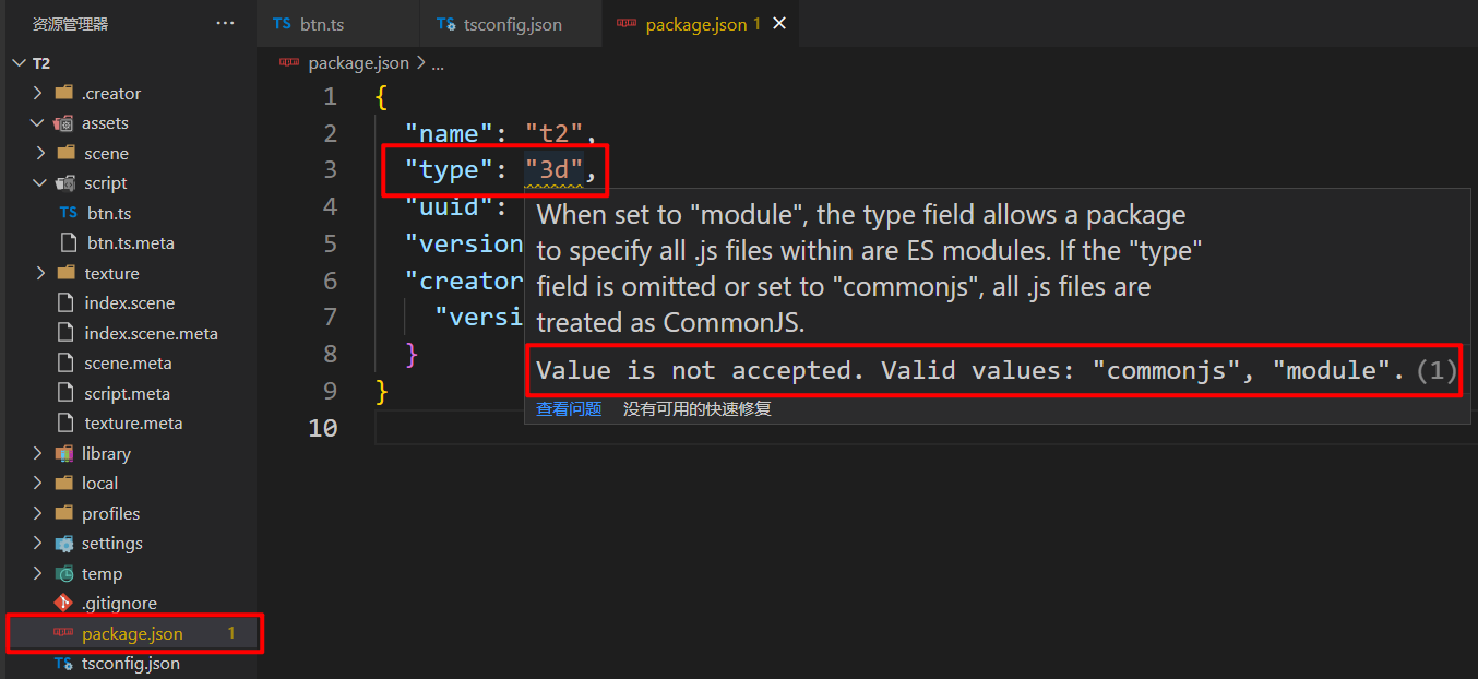 3.4.1中,创建新项目时,项目中的package.json中的"type":"3d",是否属于正常