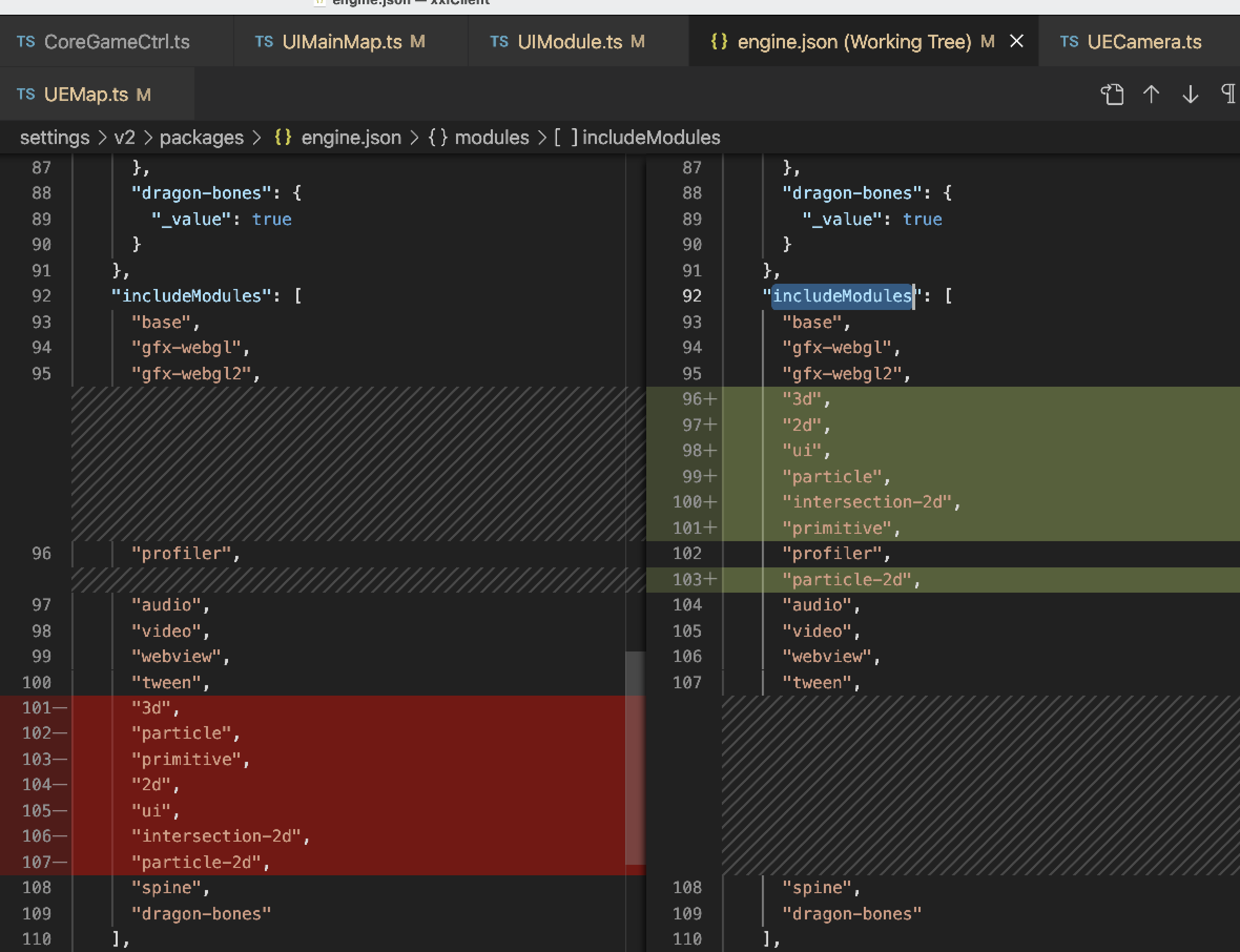 Layers 层中修改层的时候,导致 engine.json 发生改变。