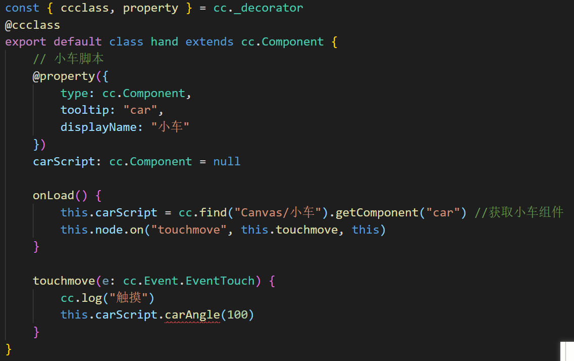 carScript 定义的时候声明为具体的类型,不要用 cc.Component。cc.Component 这个类型上是没有 carAngle方法的