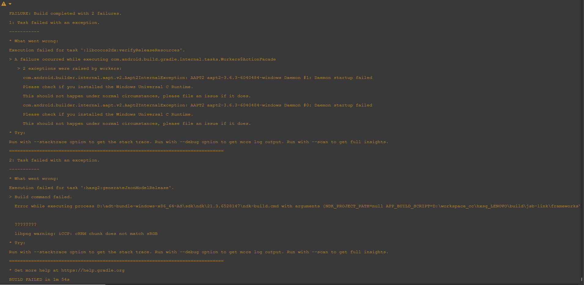 一次编译 弹出4次! 还失败了! 但AS直接编译release版 还是可以成功的!