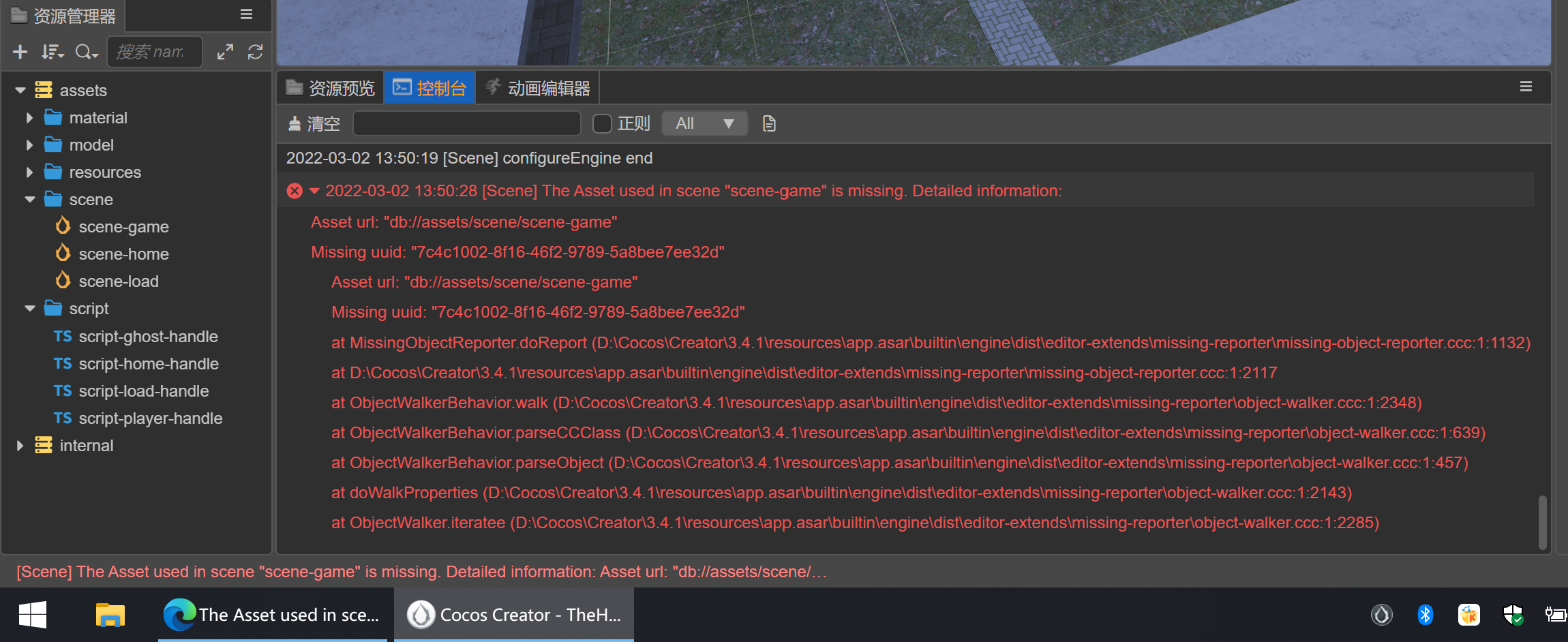是指场景中的某个资源丢失,资源的 uuid 改变了