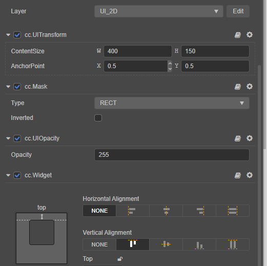 如图在一个节点下挂载了一个Mask组件和一个UIOpacity组件