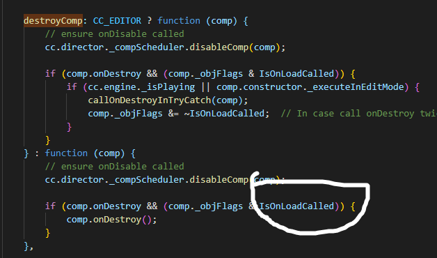 现在看来其实自己实现一个方法,在destroy节点前调用,自己管理各个节点和组件做销毁前准备是比较合适的。onDestroy方法稍显鸡肋,如果onDestroy带个回参表示自己有没有经历过onLoad,不知这样合不合适。