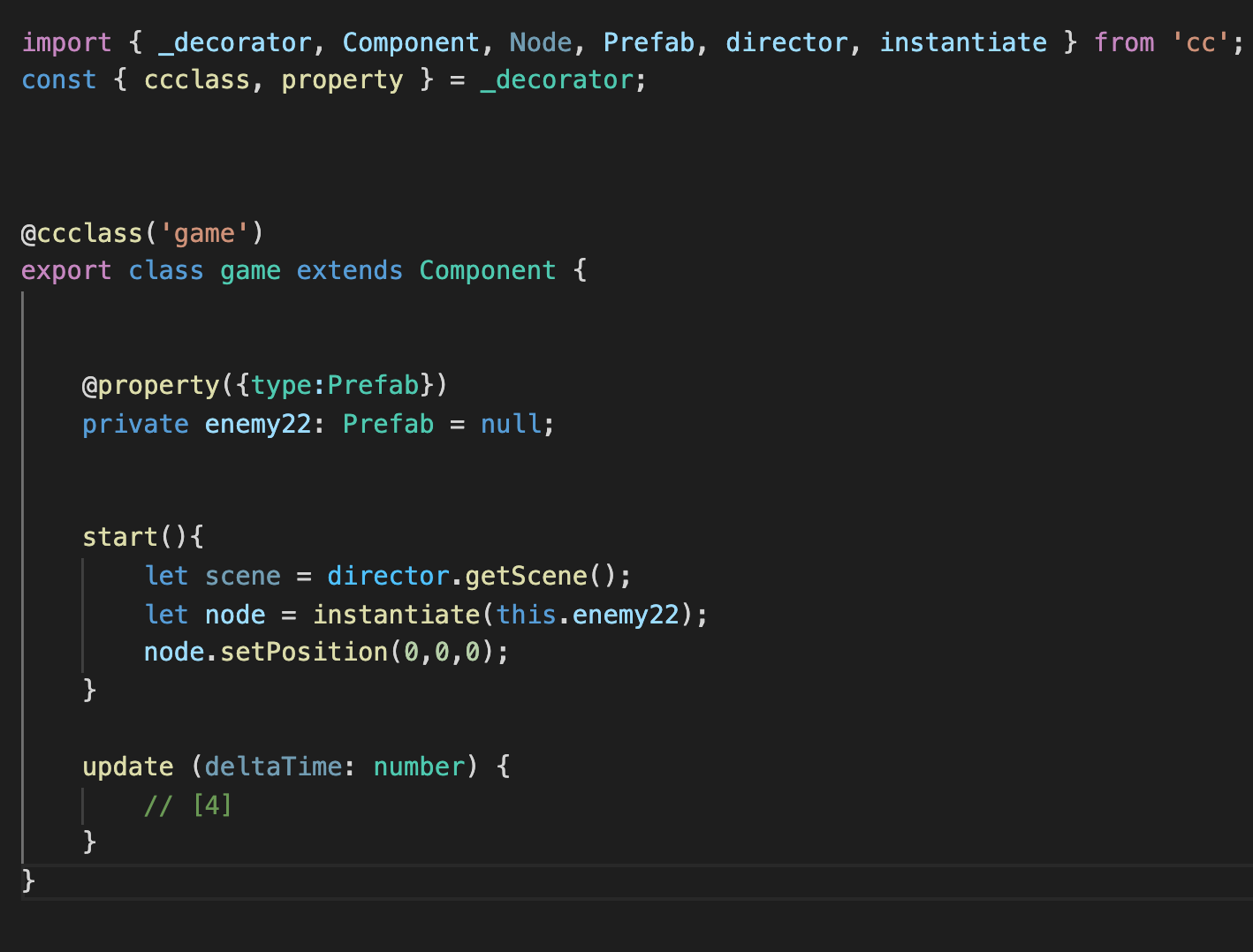 代码是这样 没有将预制体生成出来, 先不管位置,先让预制体生成出来