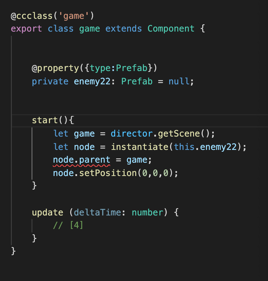 可以鼠标放到红色波浪线上看看什么提示,往往都能知道什么问题,比找文档方便,也可以改成game.addChild(node);试试