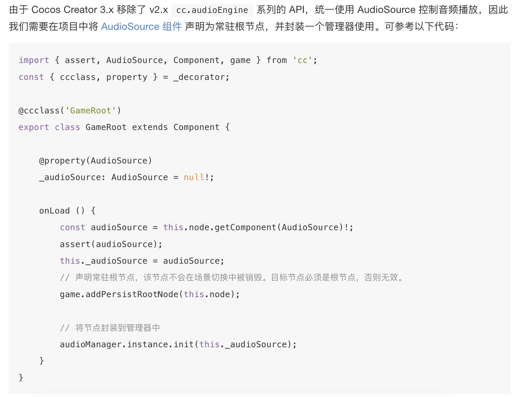 import { _decorator, Component, Node, AudioSource,resources, AudioClip} from ‘cc’;
