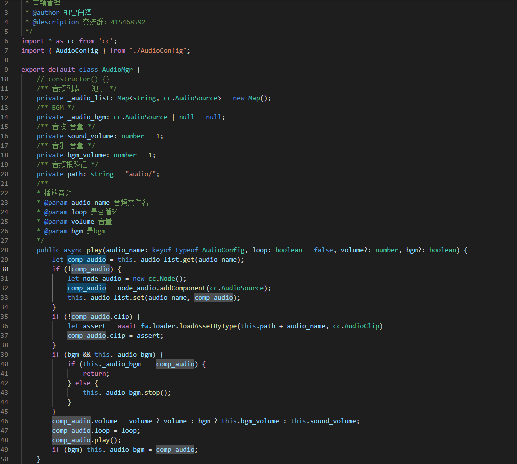 @ccclass(‘CommonAudioManger’)