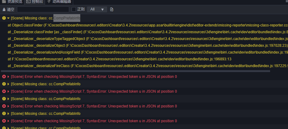 有人知道升级引擎提示 cc.CompPrefabInfo 丢失怎么处理吗?