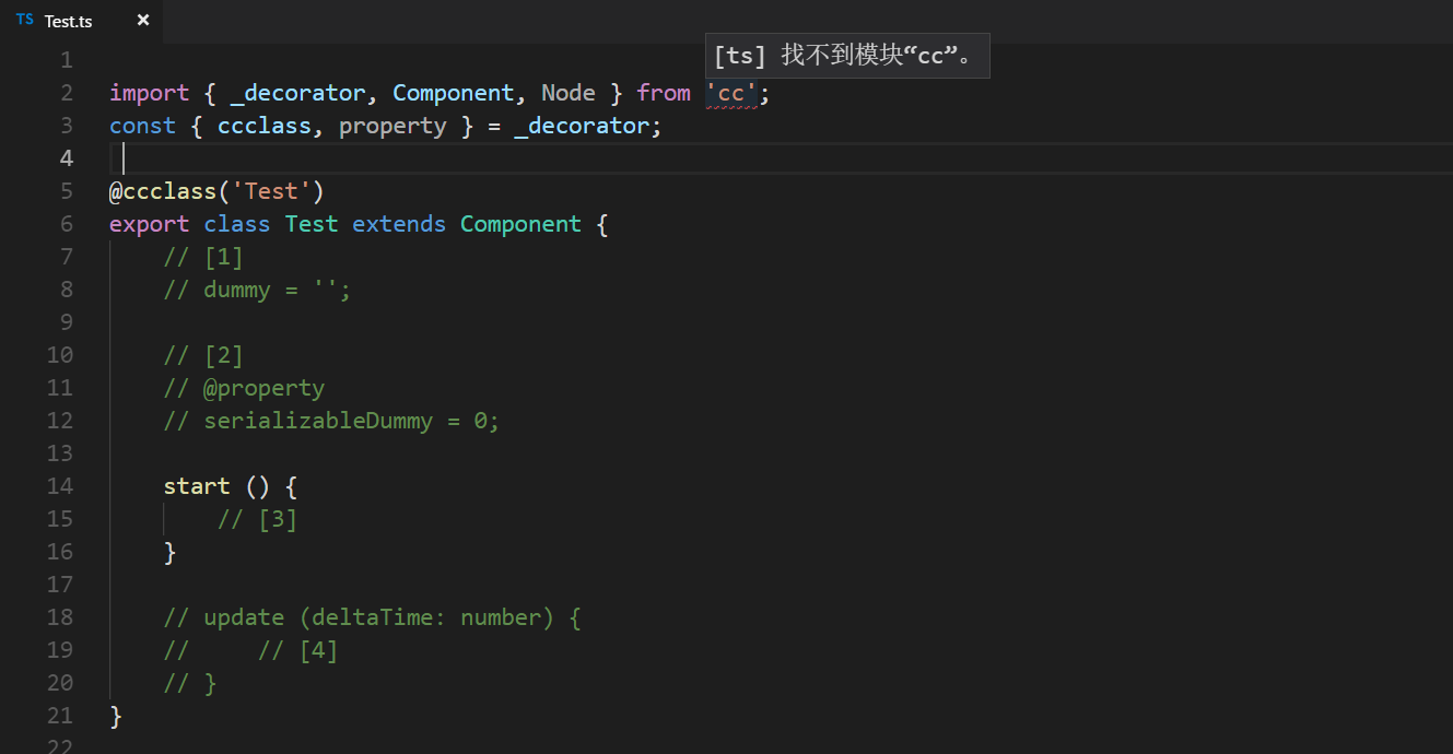 问题描述:用vscode打开ts脚本, 无法解析出模块 ‘cc’