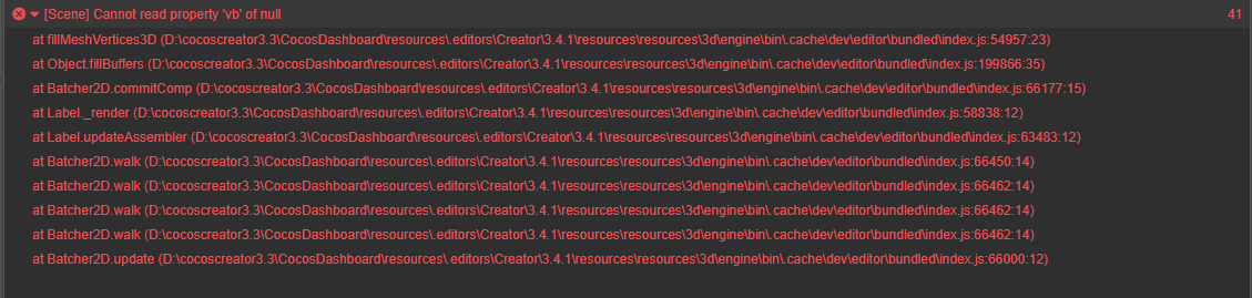我这边也遇到这个问题,我321升级到342打开scene报这个错,运行也是报错,通过排除法一个一个删除节点发现如果把canvas节点删除,也就是没有UI节点就不会出现这个问题(就算把canvas下所有的UI节点删除还是会报错,只有全部删除才停止报错),还在继续往下排查
