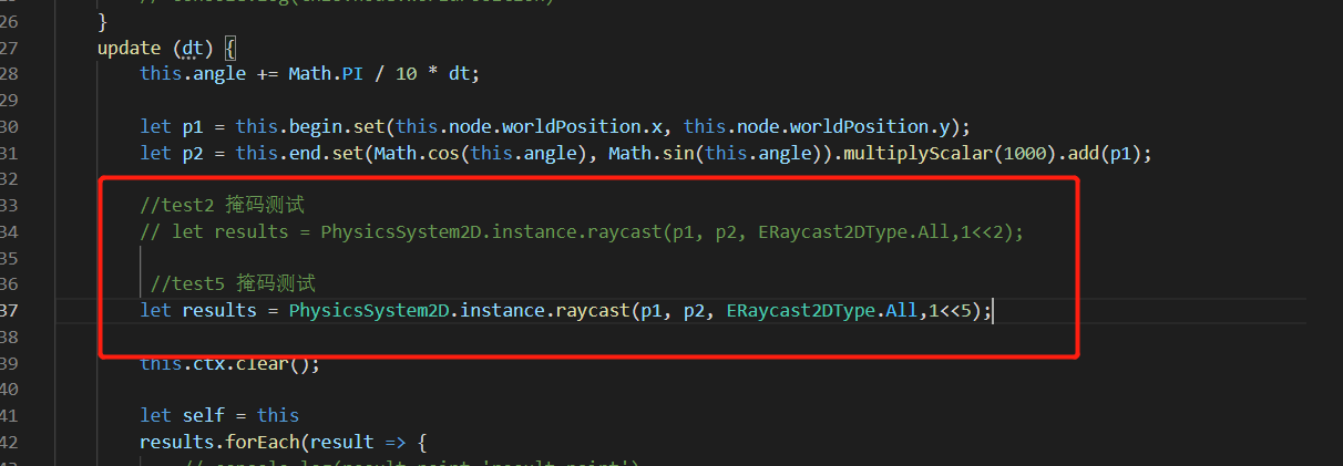 2d射线检测,在使用掩码之后,检测不到对应分组的碰撞体。