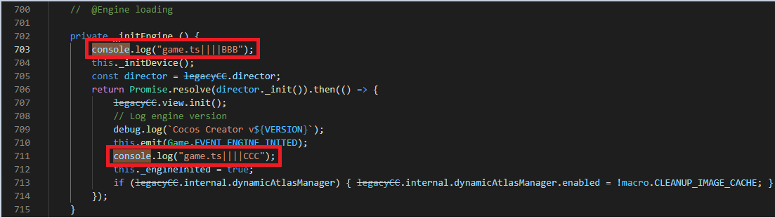 当我把编译好的assets文件夹下的资源放入我自己的android项目里面打开游戏,有概率不会执行到第三个log。请问是什么原因,以下是不正常和正常时的截图,不正常时就无法进入游戏一直卡在那里