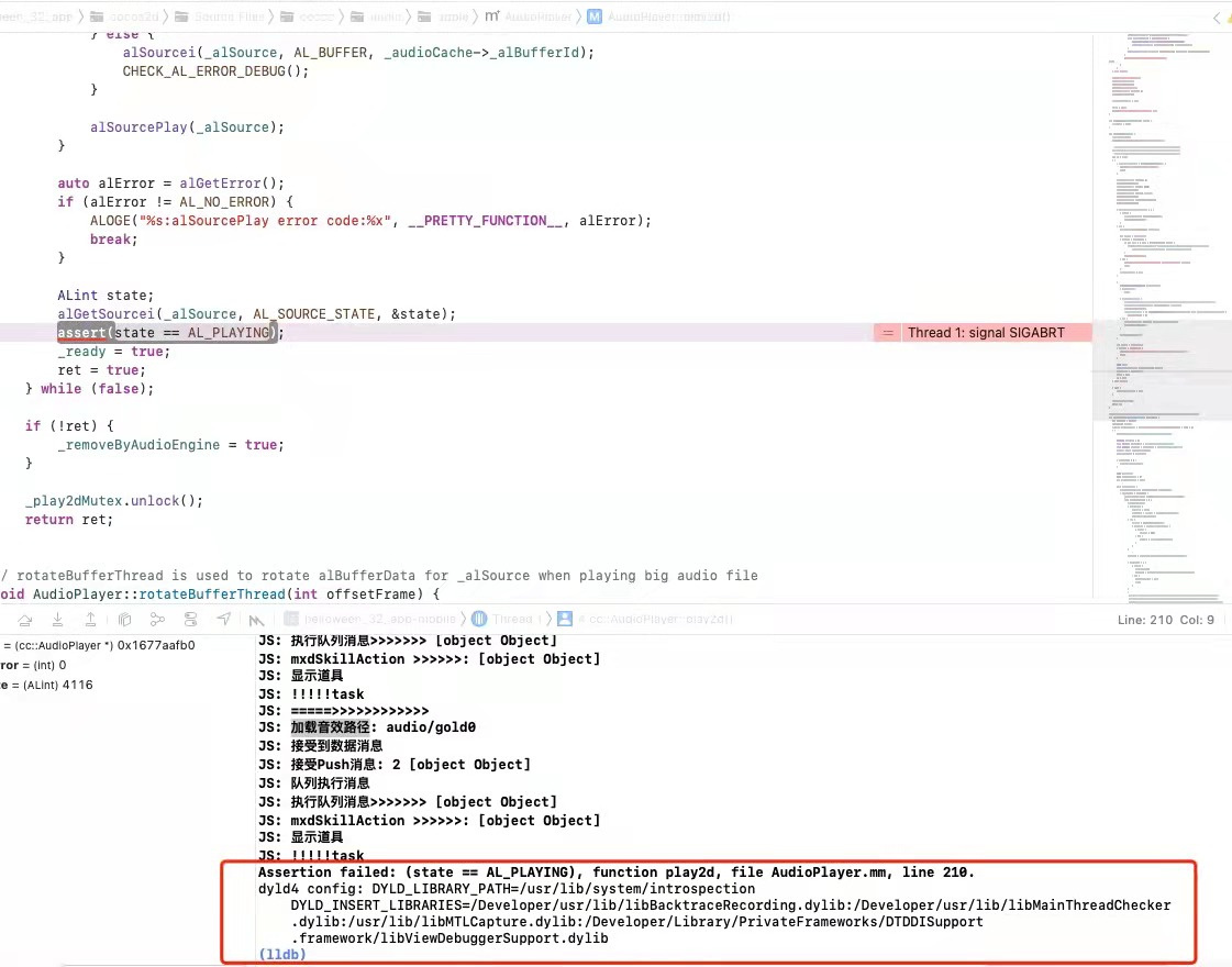 Assertion failed: (state == AL_PLAYING), function play2d, file /Users/mac/Documents/editor_3d/v3.4.2/resources/3d/engine-native/cocos/audio/apple/AudioPlayer.mm, line 210.