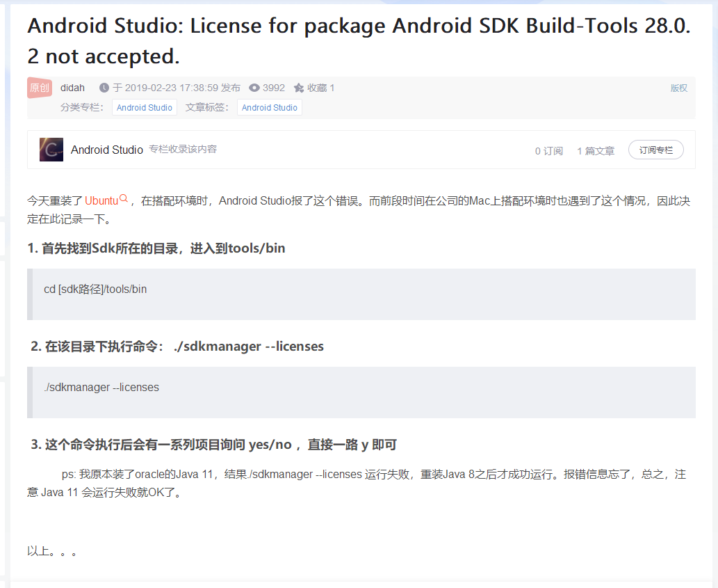 下面是android studio的提示: