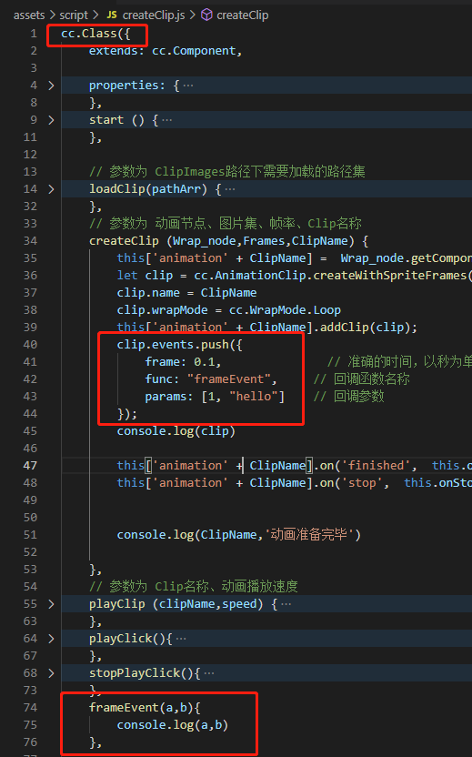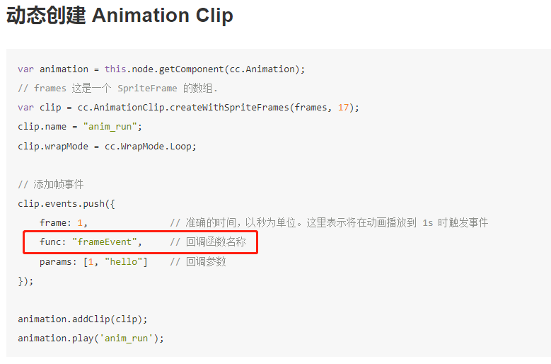 Let try to set : clip.events[0] = {frame : 1, func: “frameEvent”, params : [“xxx”]}
