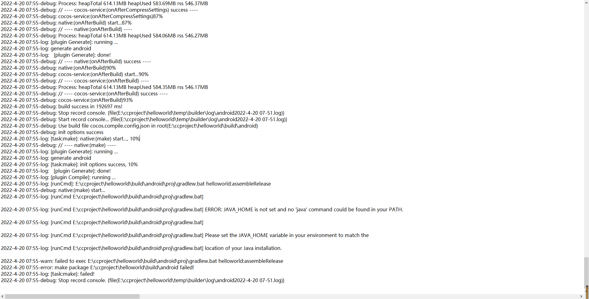 2022-4-20 07:55-warn: failed to exec E:\ccproject\helloworld\build\android\proj\gradlew.bat helloworld:assembleRelease
