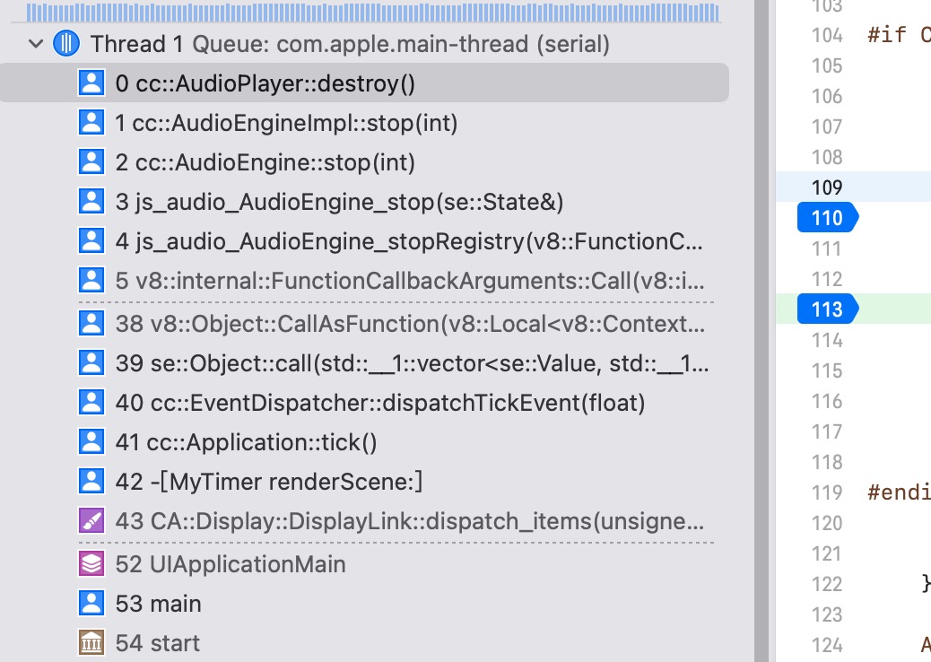 然后在语音过程中,只要stop 音乐,就会导致卡死(死循环在下面这个位置), 你说我可以选择不停么,也不行啊,不受sdk影响的时候,背景音乐从后台回来还会经常莫名的加速,死结
