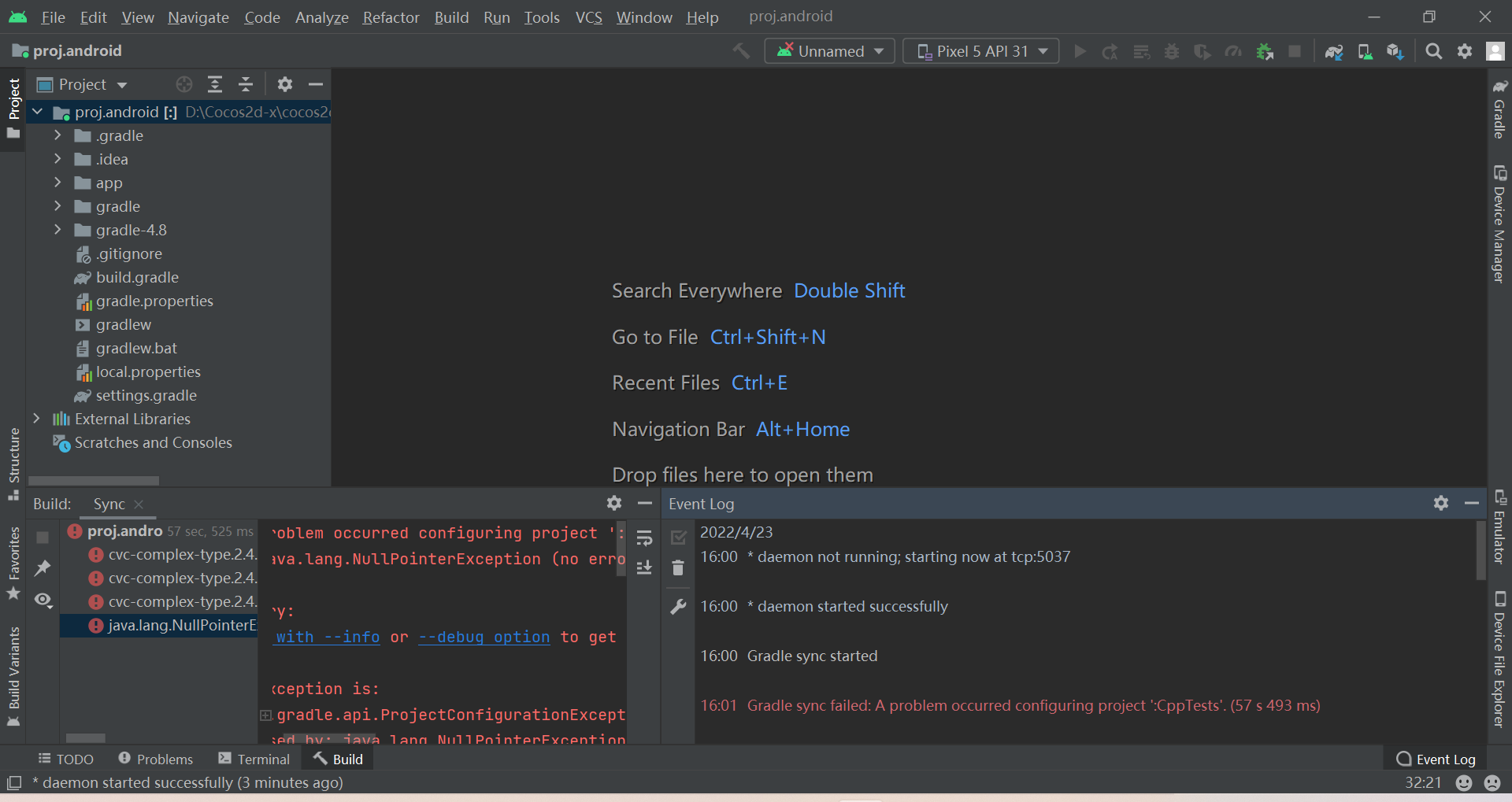 第一次在AS运行cocos给的demo,运行失败了