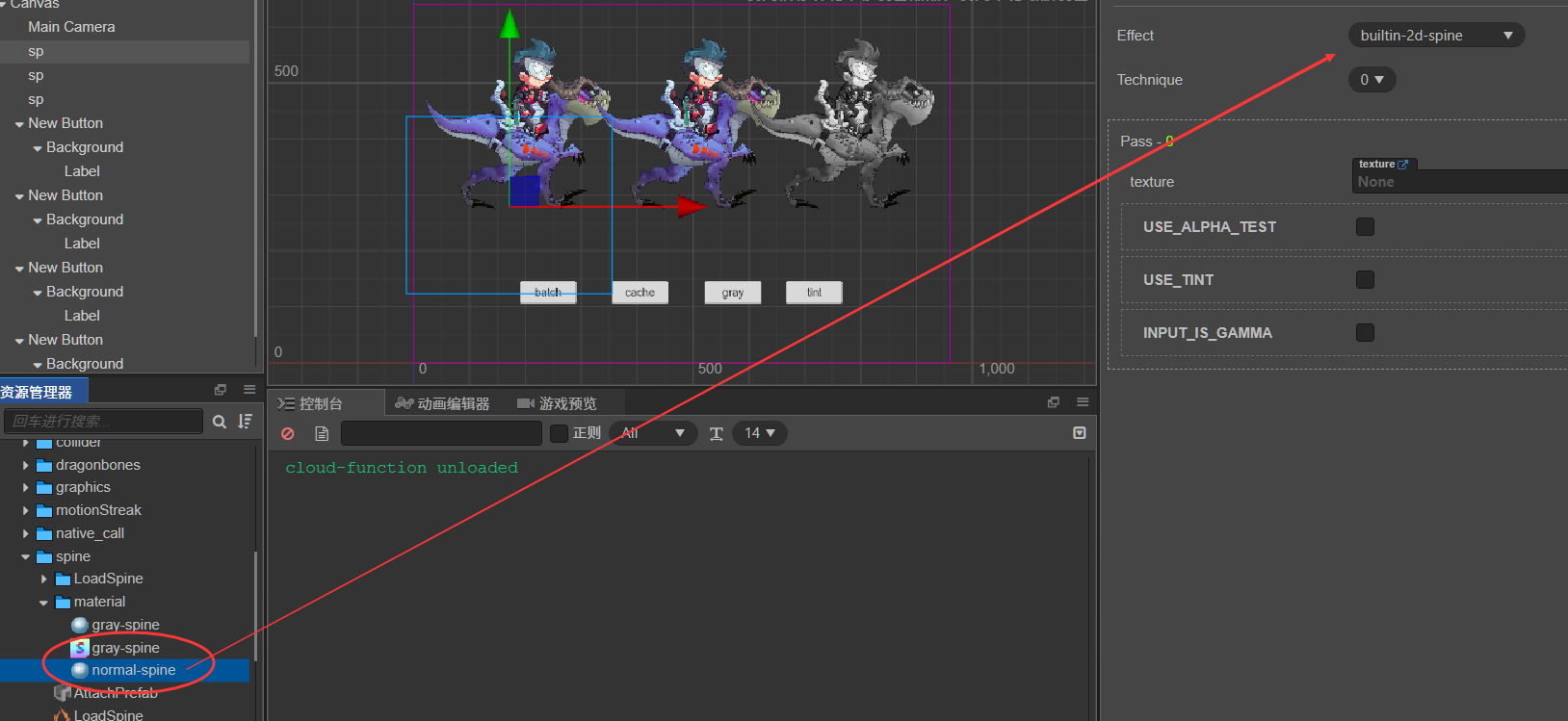 可参考 2.x 范例,SpineBatch 场景进行处理,(spine 使用 builtin-2d-sprite 没有警告?)