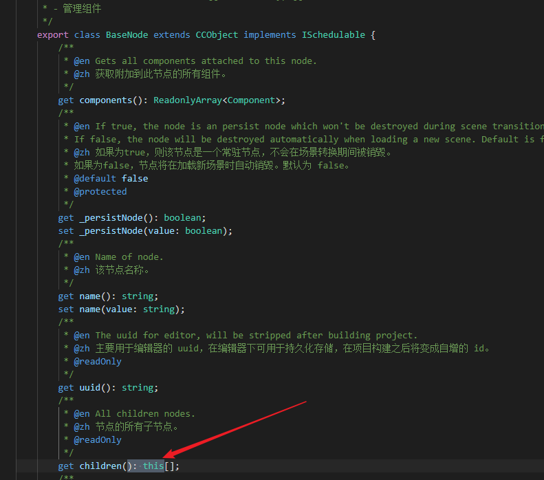 讲实话如果没有 base node,children 直接返回 Node 就好了。有了之后才需要 this,才引发这个 ts 的类型问题。