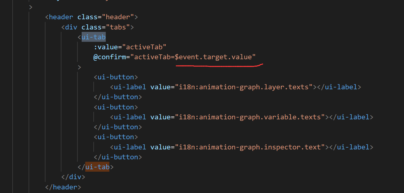 插件ui组件的 ui-tab 里面的 ui-button 添加@confirm监听没用,调试发现confirm只有一个编辑器注册的回调,而用 v-model 绑定 ui-tab 标签也没有收到回调