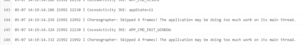 05-07 14:19:14.259 21992 21992 I Choreographer: Skipped 6 frames! The application may be doing too much work on its main thread.