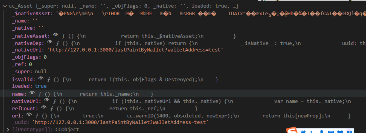 - 在nodejs express服务器,不可直接通过浏览器打开图片的情况下,loadRemote的url填的是服务端用sendFile发送图片的接口,得到了一个cc.Asset类型的资源,里面有那张图片,在2.4.8存在_$nativeAsset里面,3.5存在_file里面,但没有办法把它赋给spriteFrame。