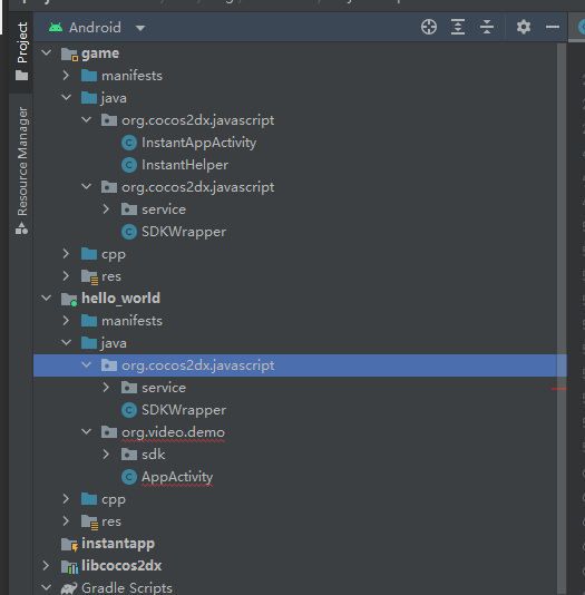 为啥有两个文件夹game和app,为啥都有org.cocos2dx.javascript,为啥项目的SDKWrapper会爆红?