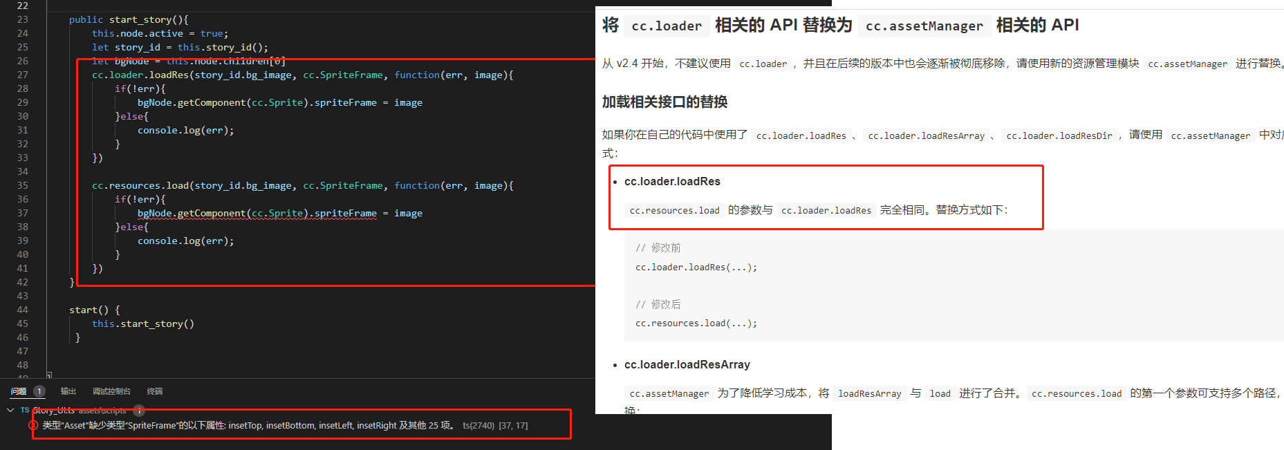 官方文档里说把 cc.loader.loadRes 修改为 cc.resorces.load 即可,但是我修改后代码报错,如下: