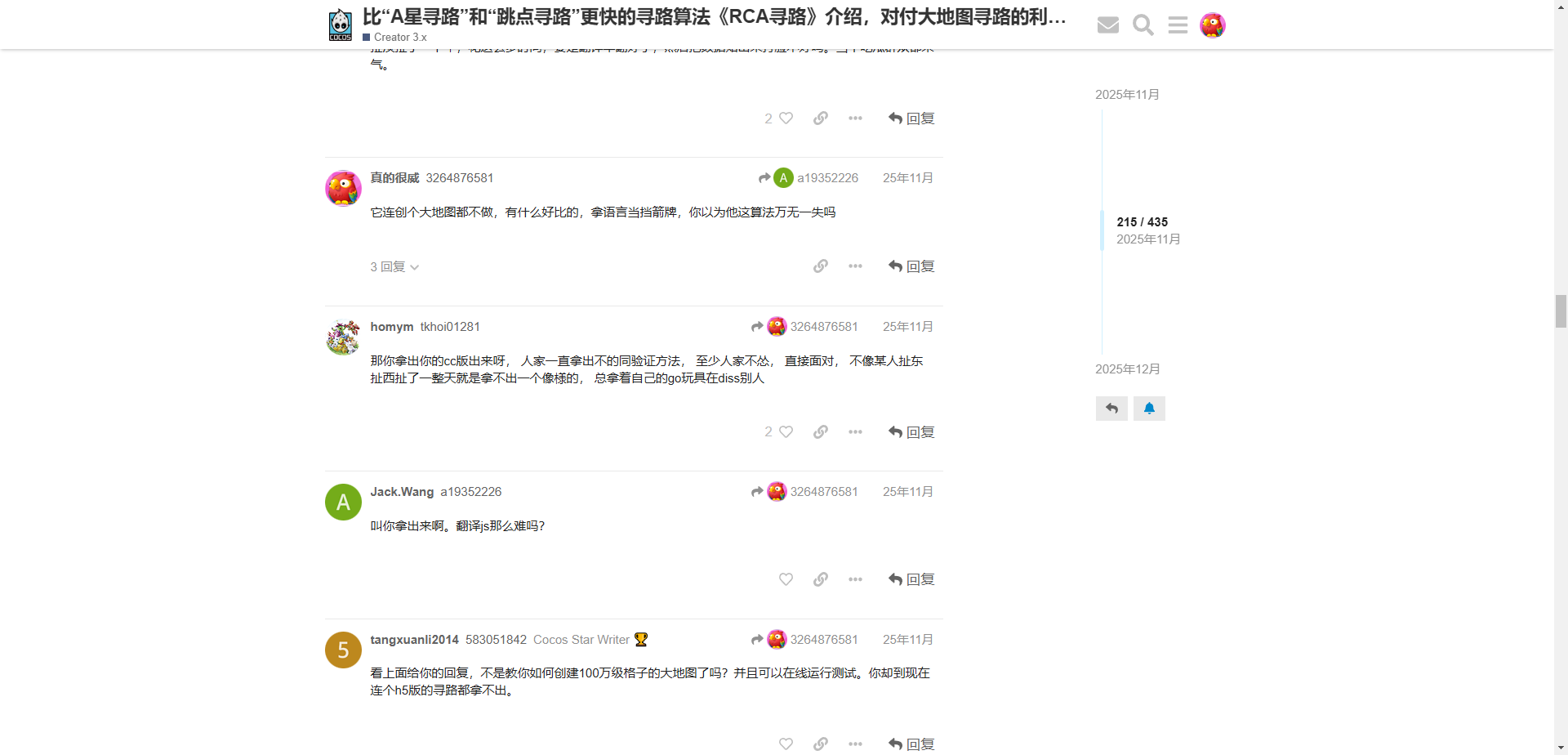 一个连A星都没学明白的人,说自己自创了别人17年就发过的教程,指出缺陷不当一回事,还说自己做了十几年开发,我要做十几年还是这个水平我直接打个老鼠洞钻进去了笑死了