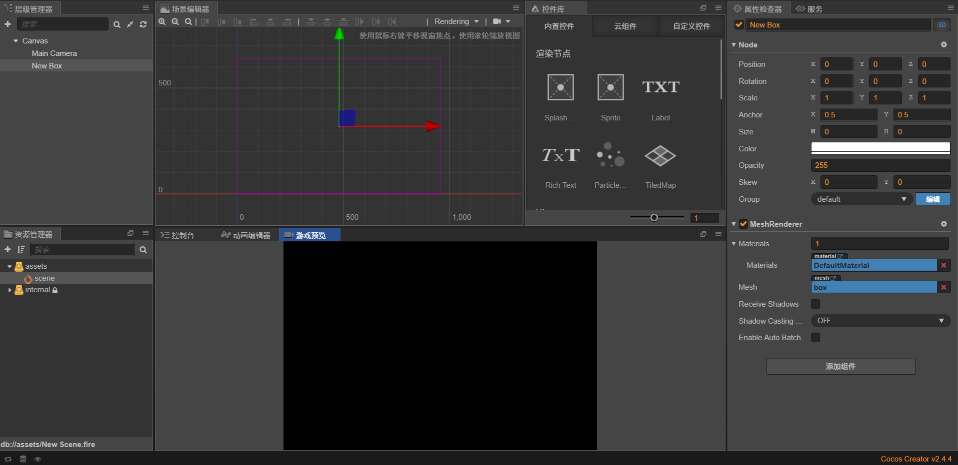 我的运行预览之后,什么也看不到,看不到我创建的3D节点,只能看到一片黑