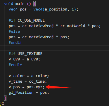 嗯,整个画面就类似uv一样,左下是原点,从0~1的渐变,对应将上面代码的uv改成v_pos得到如下代码