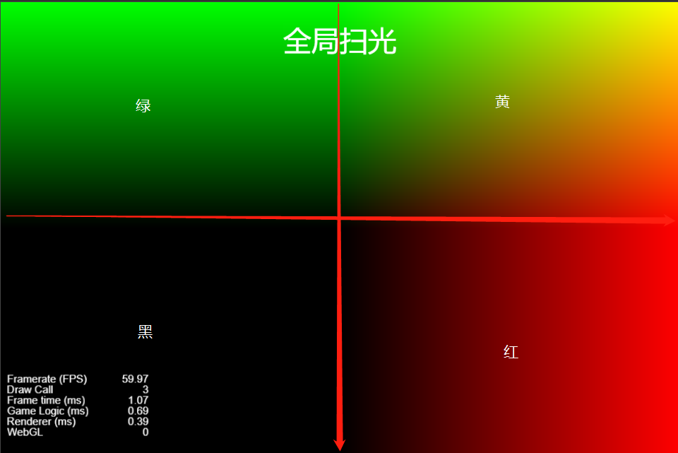 x方向是红®,y方向是绿(g),2D不考虑z,看得出从左到右x是从-1到1的,从下到上y也是从-1到1的,在两者叠加的部分r+g就成了黄色(右上角),将坐标收缩到0~1试试?